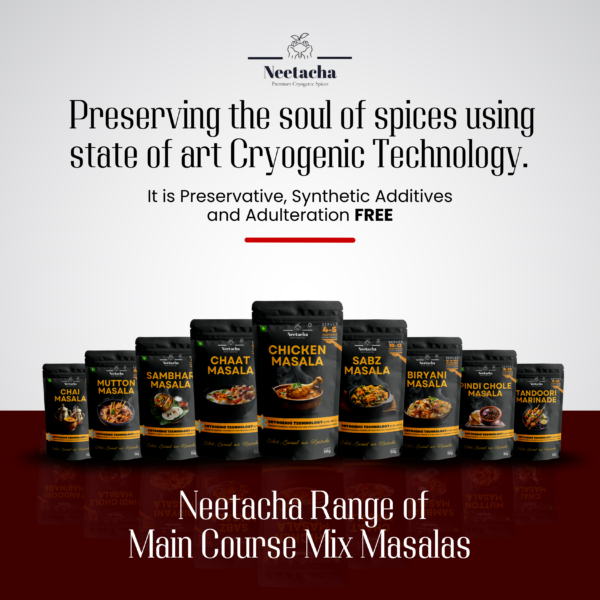 We believe in technology of cryogenics in changing the form of spices, while preserving the “SOUL OF SPICES” i.e maintaining their natural aroma, taste and all therapeutic values. In the ever-evolving landscape of gastronomy, Neetacha stands as a beacon of culinary ingenuity, embracing the vanguard technology of cryogenics to redefine the very essence of spices. Our revolutionary approach reimagines these tiny aromatic powerhouses, preserving their quintessential “Soul of Spices” while imbuing them with new dimensions of flavor and aroma. Since time immemorial, spices have been revered for their ability to elevate dishes from mundane to extraordinary. They possess an inherent magic that titillates taste buds, transports senses, and unveils a world of culture with each whiff and bite. At Neetacha, we embarked on a journey to preserve this magic while exploring new frontiers in taste, all through the lens of advanced cryogenic technology. Our process is nothing short of awe-inspiring. Cryogenics, the science of extremely low temperatures, has long been used in diverse fields such as space, medicine and engineering. Now, Neetacha harnesses its potential to metamorphose spices into a realm of unparalleled enchantment. The transformation occurs in a carefully controlled environment where spices are subjected to sub-zero temperatures, delicately frozen to preserve their intrinsic properties. But how do we ensure that the spices’ soul remains intact through this cryogenic dance? It’s a symphony of art and science. The key lies in the meticulous orchestration of temperature, timing, and technique. The spices’ molecular structures undergo a delicate preservation process, locking in their natural aromas, tastes, and therapeutic values. Our team of culinary artisans and scientific experts work hand in hand, ensuring that each spice retains its unique fingerprint while evolving into a heightened form of itself.