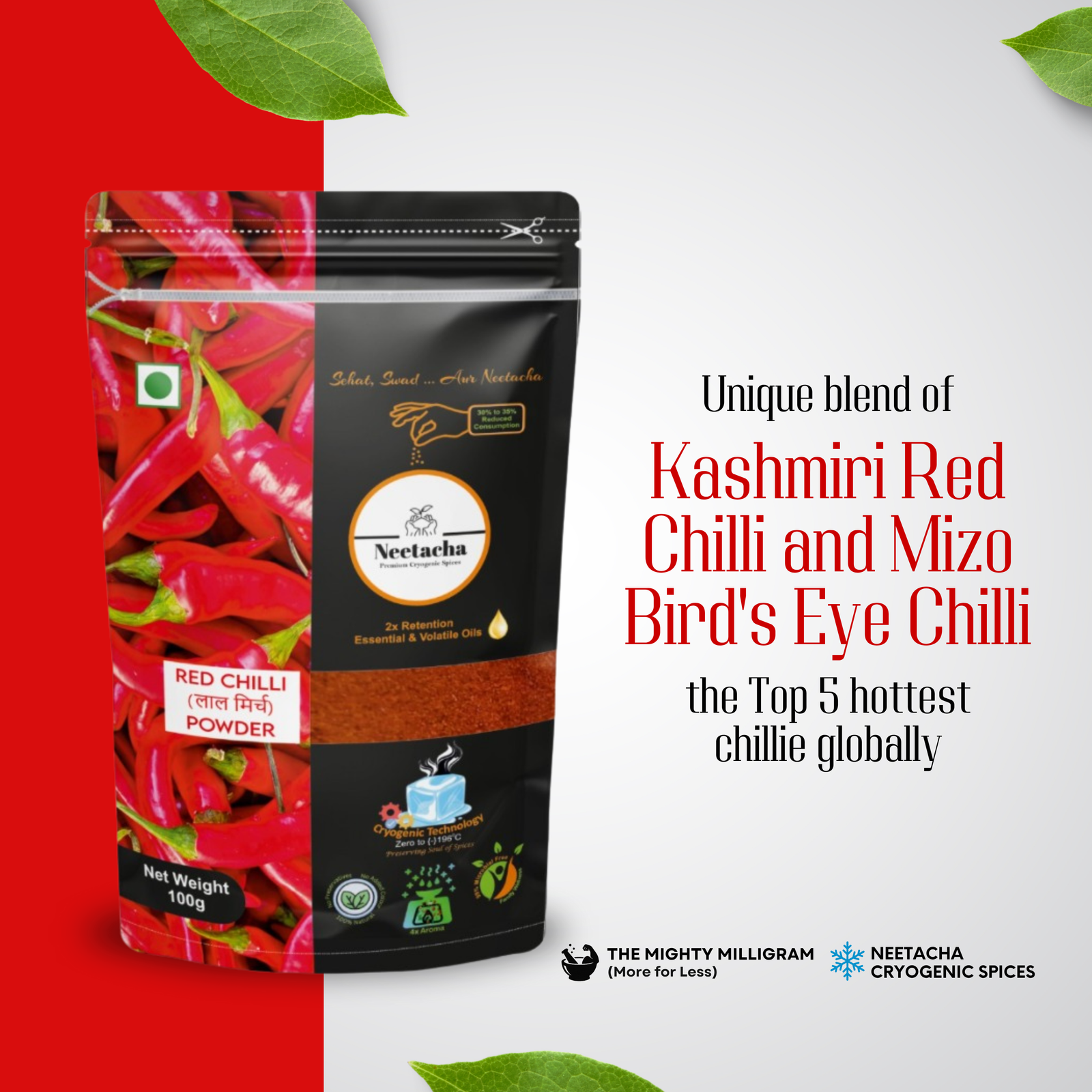 | Common name | Neetacha Premium Cryogenic Red Chilli Powder | 100 g | 50 g | Fresh & Natural, Aromatic, Flavourful for Daily Cooking Needs |