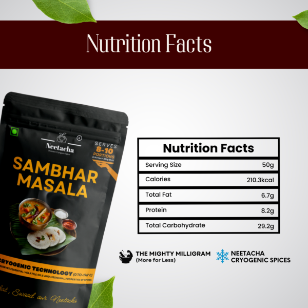| Common name | Neetacha Premium Cryogenic Sambhar Masala| 50 g | Fresh & Natural, Aromatic, Flavourful for Daily Cooking Needs |